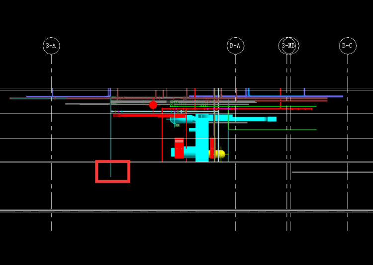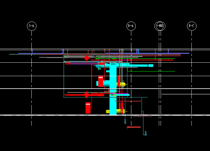 5.點(diǎn)擊B1F標(biāo)高,再次框選B1F標(biāo)高下的立管,完成后如圖,保存模型,即完成B1F模型的拆分。