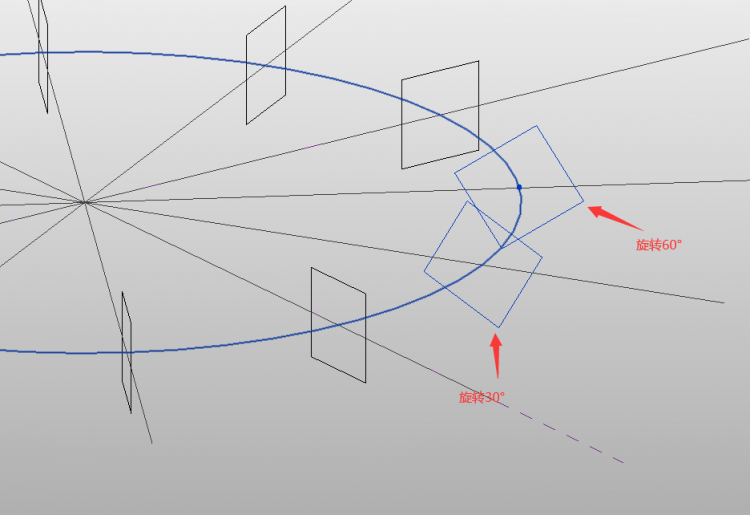 6、選中直徑使其不斷的旋轉30°,直到如下圖為止。
