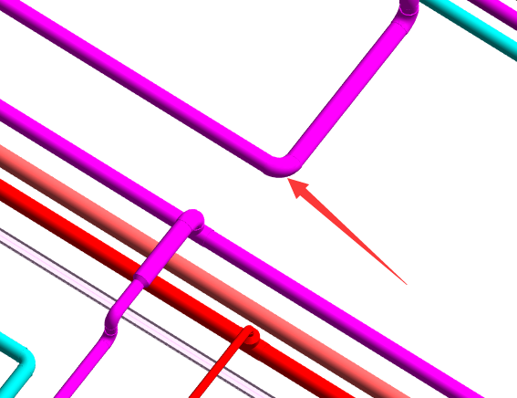 在需要改變管道系統的地方,找到一根管道,在合適的位置使用打斷命令,或者刪 除一個彎頭(三通),如圖所示。