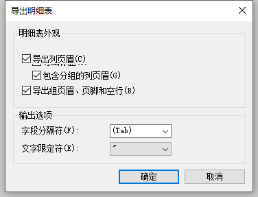 02、在彈出的對話框中選擇保存位置和文件名,點擊保存,然后彈出導出明細表對話框,不要更改輸出選項的默認設定(更改導致Excel軟件不能識別),直接點擊確定按鈕,如圖所示。