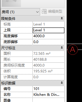 01、假設某房間需要粉刷300mm高的防水涂料。這個粉刷高度也就是房間建筑標高+300m。首先用房間工具標記好房間,然后選中標記找到周長數據,如圖所示。
