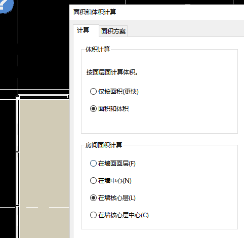 02、在房間和面積選項卡中把計算方式調整為在墻核心層,如圖所示。