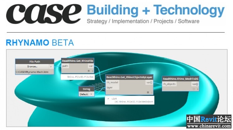接下來,RY是Case發布的Rynamo,是Rhino與Dynamo數據互換的插件,基于Dynamo,可將RH模型導入DY,也可將DY返寫入RH。