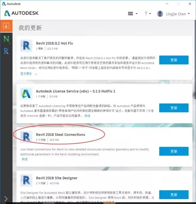 直接雙擊“Autodesk 桌面應用程序”工具,這個工具在系統的開始菜單→Autodesk文件中也能找到,然后找到分別對應Revit 2017與Revit 2018的插件版本,點擊后面的更新并安裝即可。